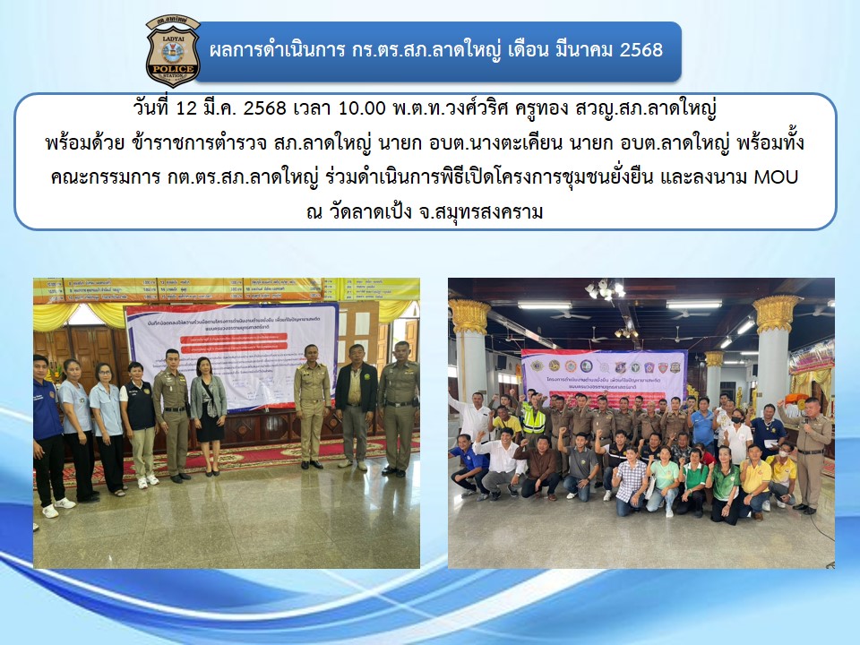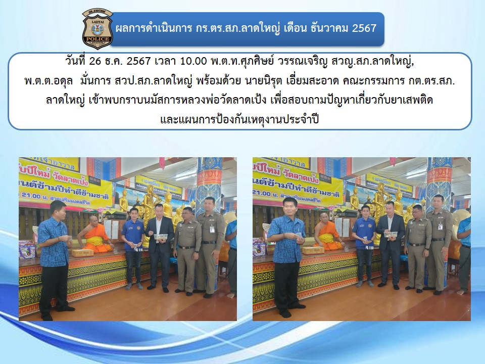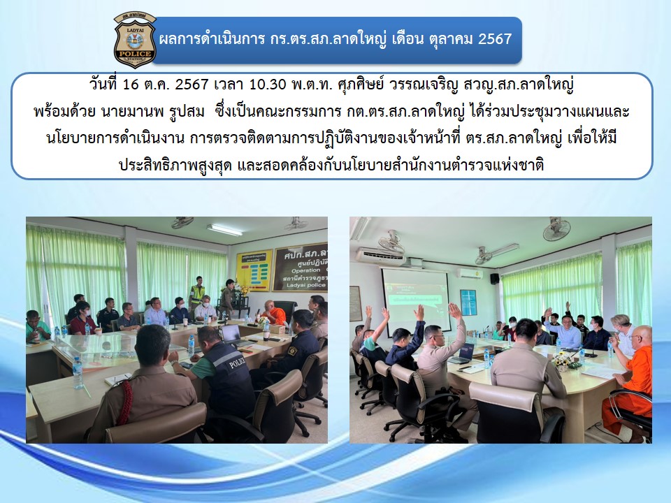 ผลการดำเนินงานของ กต.ตร.สภ.ลาดใหญ่ ที่ผ่านมา รอบ 6 เดือนแรก ปีงบประมาณ พ.ศ. 2568